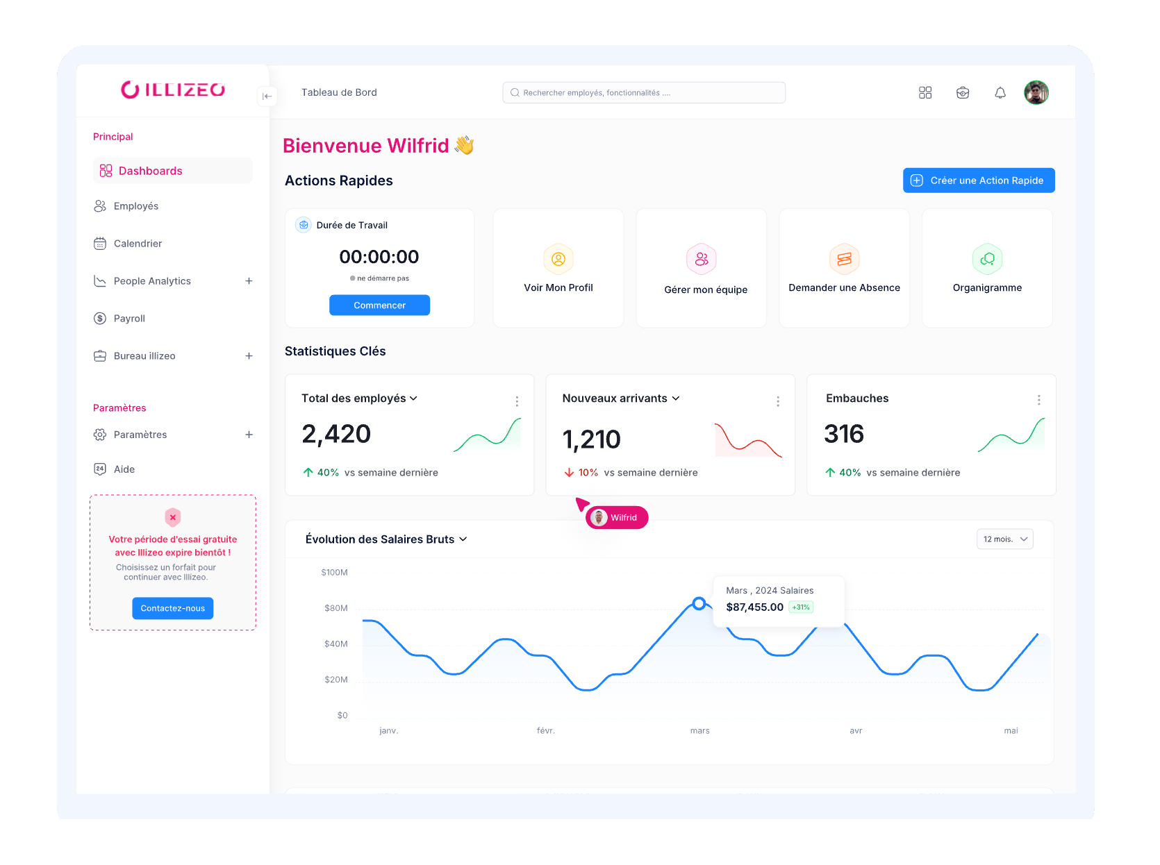Avec Illizeo, simplifiez votre quotidien grâce à une plateforme intuitive tout-en-un : Core RH, Paie, Onboarding, Gestion des temps… tout est là, en un seul endroit.
