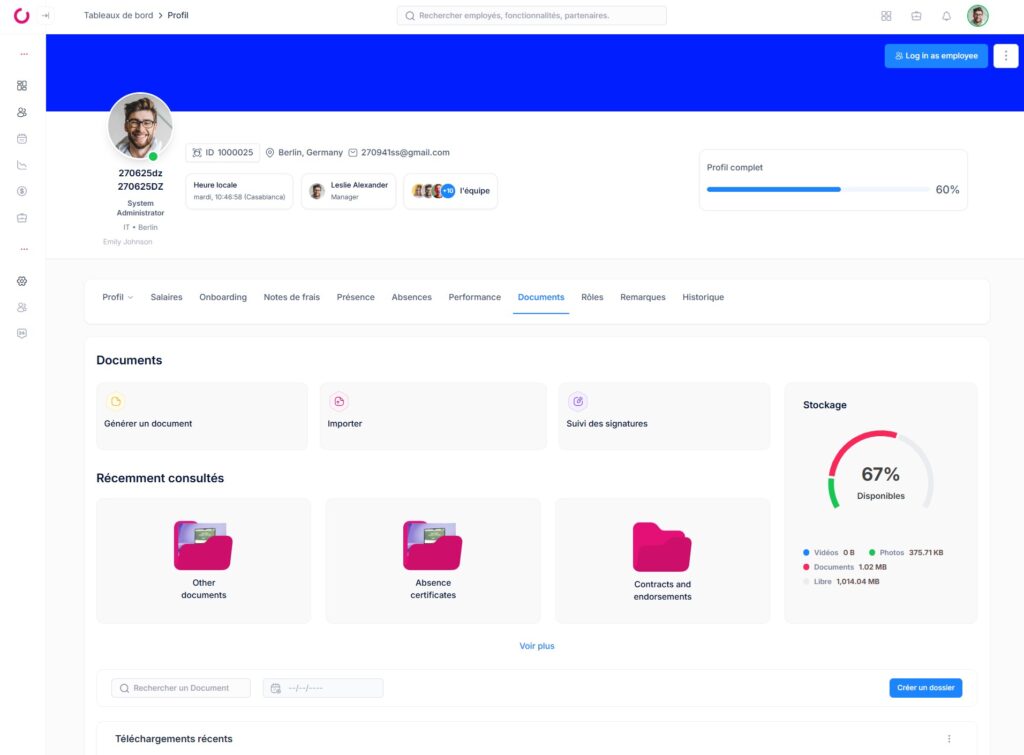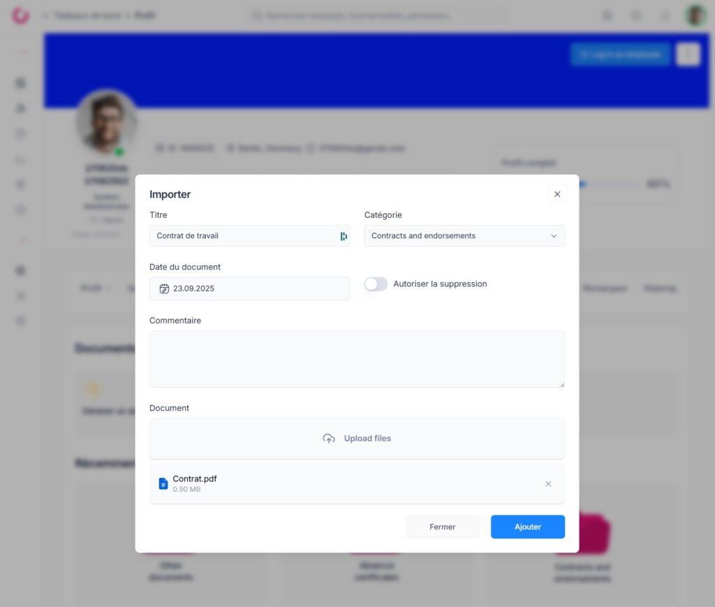 Pour charger un document unique directement depuis le profil d’un collaborateur :