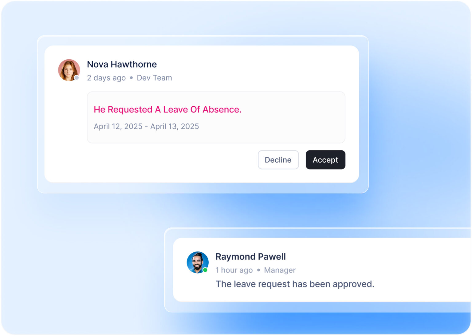 Intuitive management of leave, scheduling, remote work, and real-time tracking.