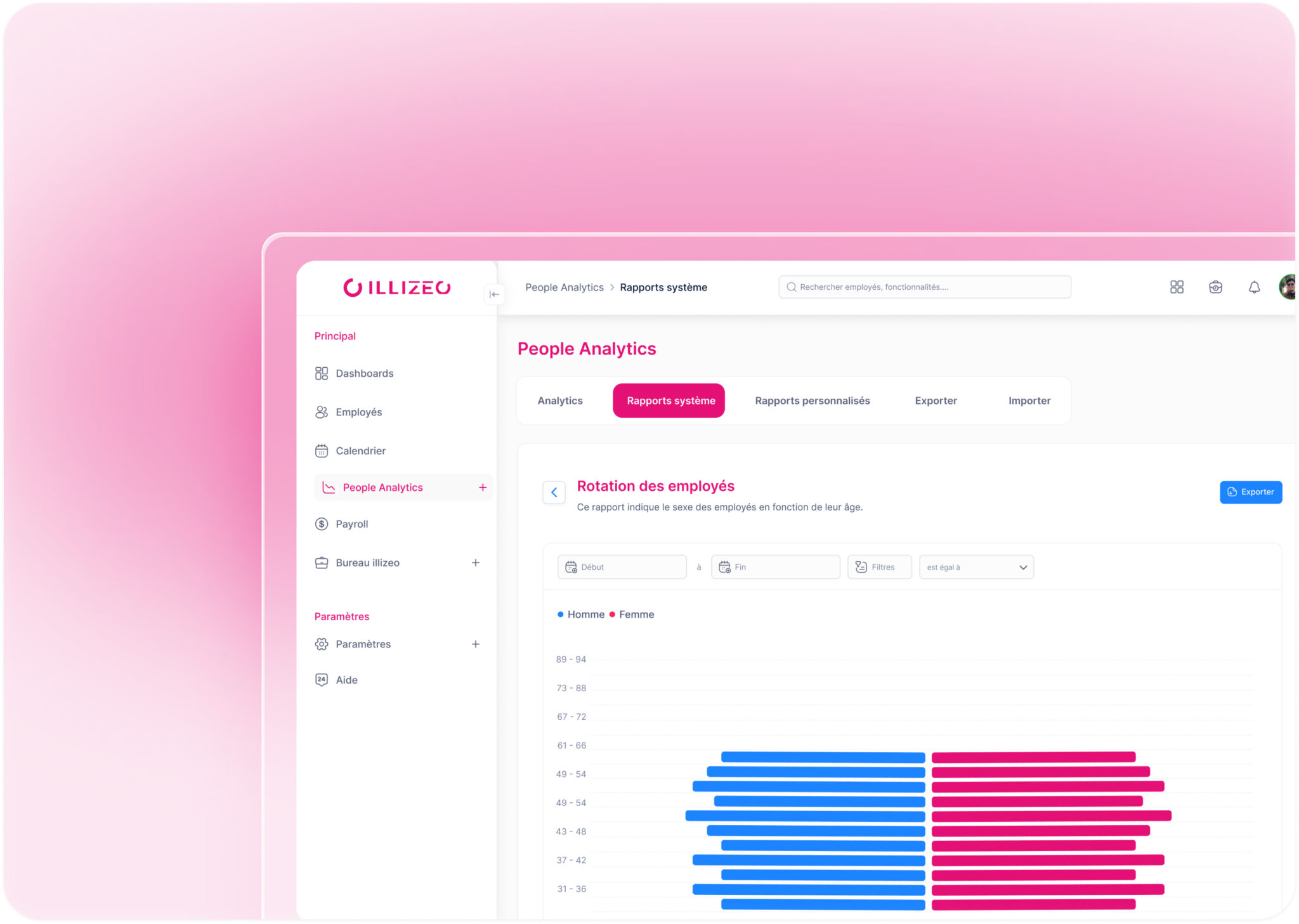 Illizeo centralizes and analyzes your HR data to provide you with detailed reports and clear insights. Reduce decision-making uncertainty and optimize your actions with relevant statistics.
