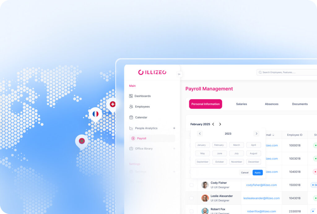 With Illizeo, simplify the payroll management of your employees, regardless of their country or status. Our unified payroll solution automates key processes, ensures local legal compliance, and frees you from repetitive tasks.