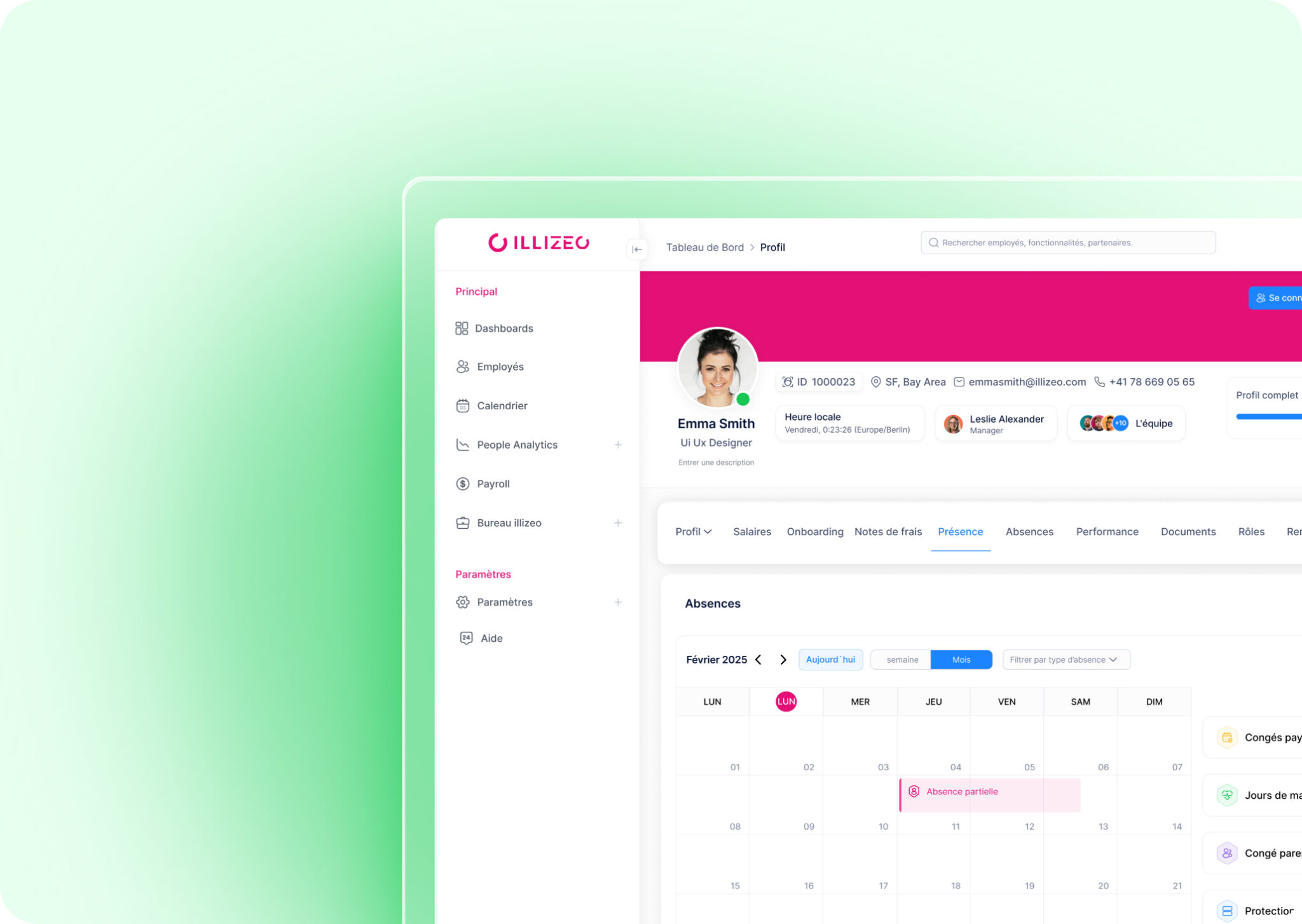 Illizeo centralise les demandes d’absence, automatise les validations et met à jour les soldes en temps réel. Résultat : moins d’administratif, plus de visibilité, et une paie juste — dès le premier mois.
