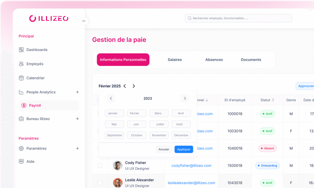 Illizeo vous accompagne avec une solution complète et conforme aux exigences suisses pour vous libérer des contraintes administratives et vous permettre de vous concentrer sur votre cœur de métier.