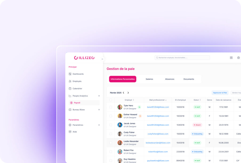 Avec Illizeo, simplifiez la gestion salariale de vos collaborateurs, quel que soit leur pays ou leur statut. Notre solution de paie unifiée automatise les processus clés, garantit la conformité légale locale et vous libère des tâches répétitives.