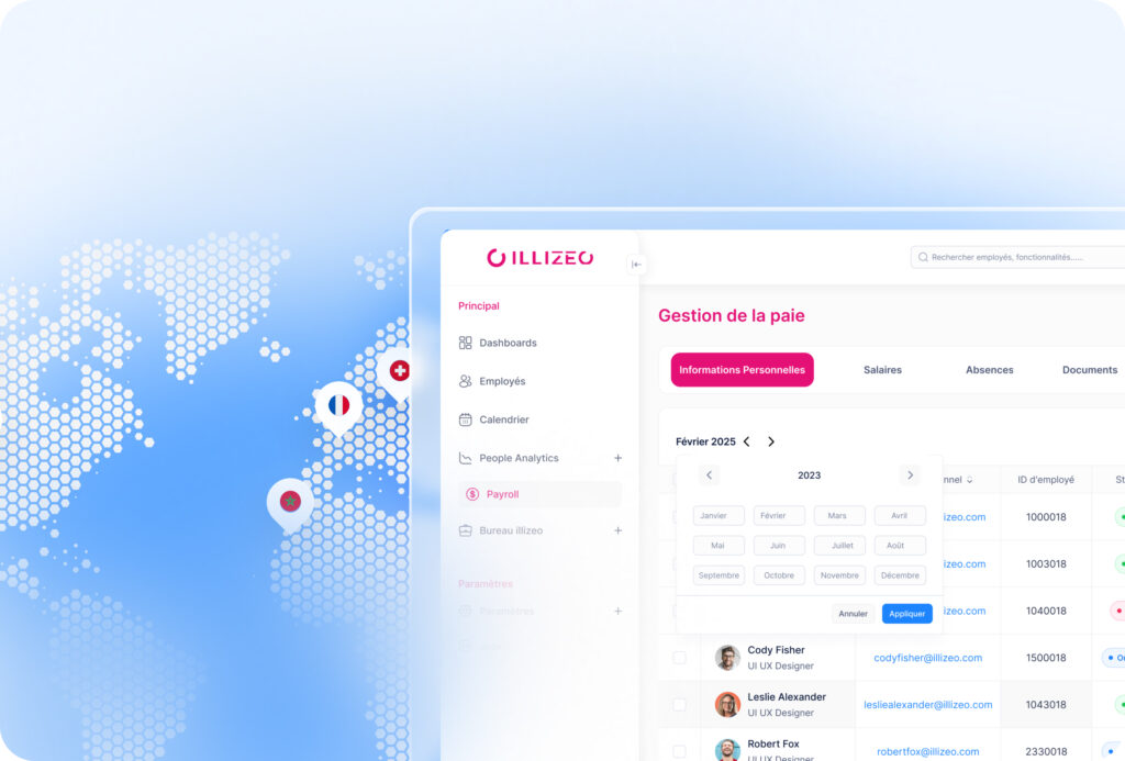 Illizeo gère les spécificités de chaque pays : règles locales, devises, formats de bulletin, langues… Vous pilotez l’ensemble depuis une interface unique.