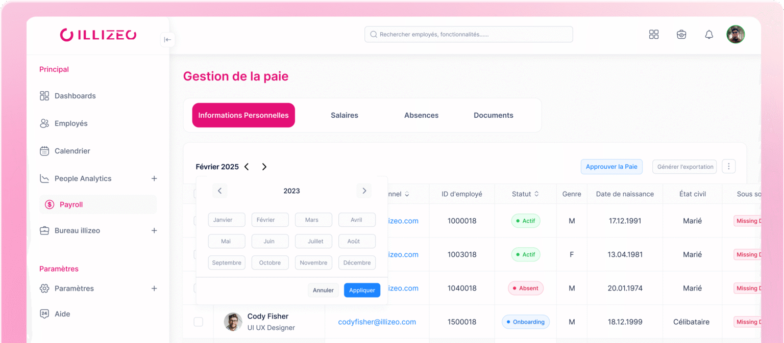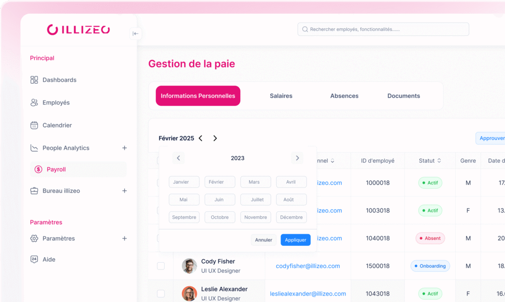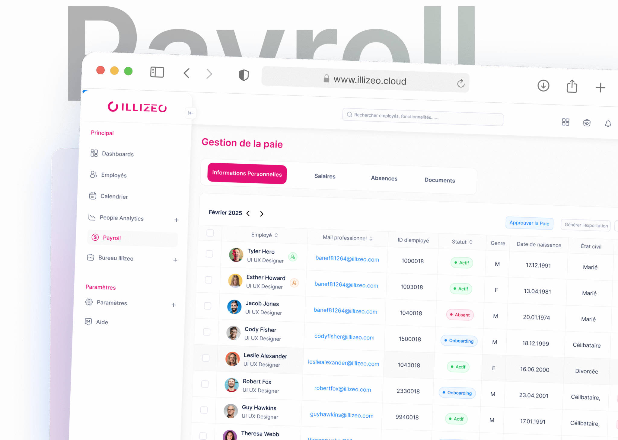 Illizeo vous accompagne avec une solution complète conforme aux exigences suisses, vous libérant ainsi des contraintes administratives et vous permettant de vous concentrer sur votre cœur de métier.