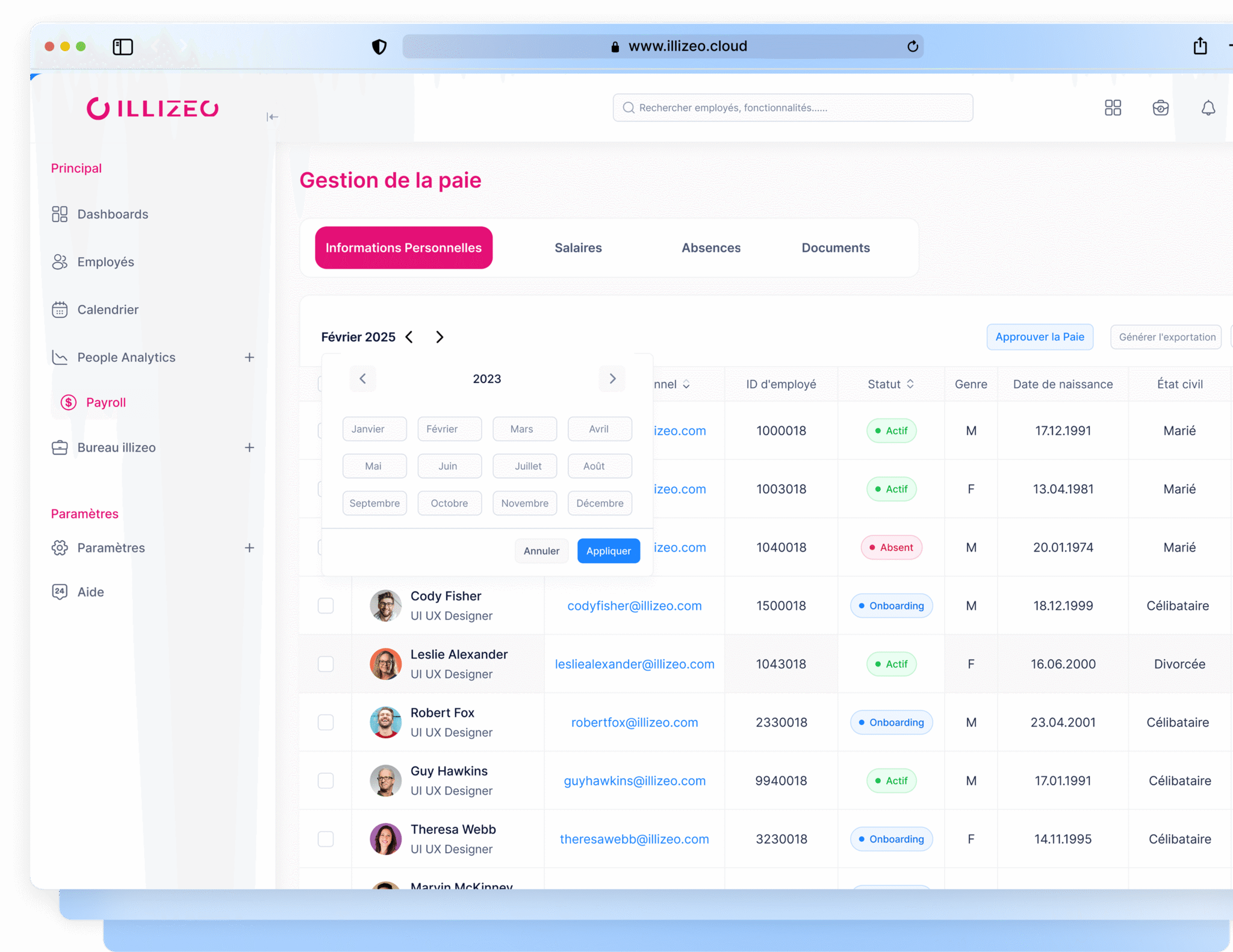 Si vous travaillez avec un conseiller fiscal, Illizeo facilite la validation et l'approbation de la paie, renforçant ainsi la collaboration et la confiance.